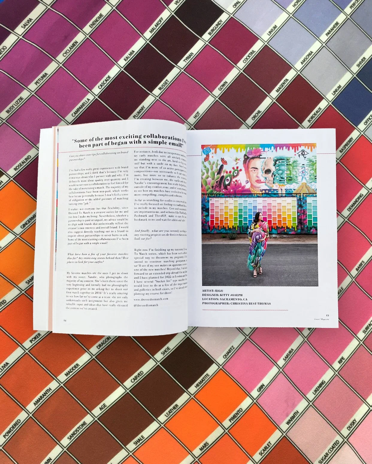 Dressed To Match began coincidentally in 2015, when I wore a pink ombré Diane von Furstenberg dress to an exhibition opening that matched an abstract painting in the exhibition perfectly. The likeness was uncanny—it really seemed that a collaboration between the designer and artist had taken place! Though the match was completely unintentional, it made me wonder if I could match another piece on purpose ... and so my obsession began.
