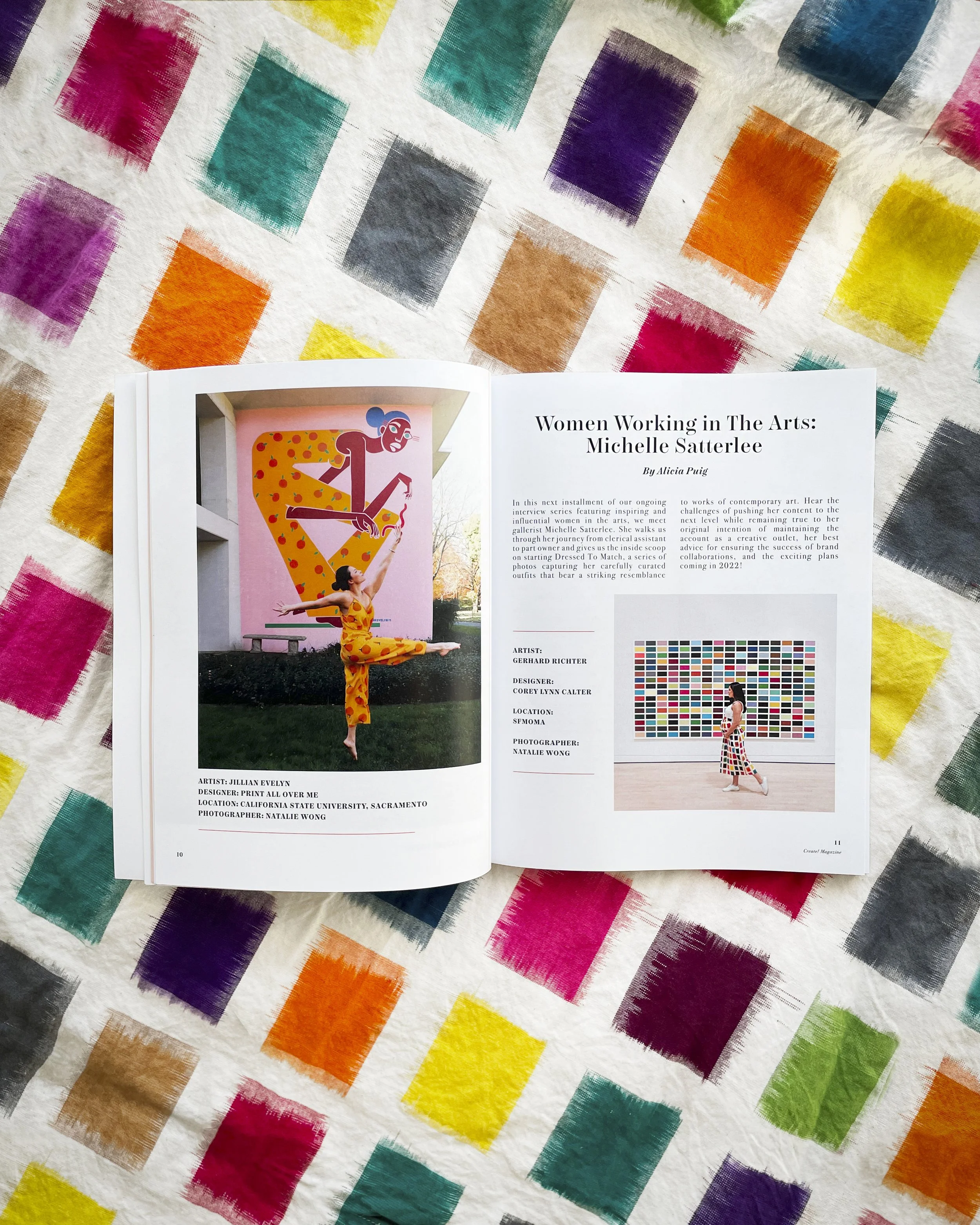 In this next installment of our ongoing interview series featuring inspiring and influential women in the arts, we meet gallerist Michelle Satterlee. She walks us through her journey from clerical assistant to part owner and gives us the inside scoop on starting Dressed To Match, a series of photos capturing her carefully curated outfits that bear a striking resemblance to works of contemporary art. Hear the challenges of pushing her content to the next level while remaining true to her original intention of maintaining the account as a creative outlet, her best advice for ensuring the success of brand collaborations, and the exciting plans coming in 2022!
